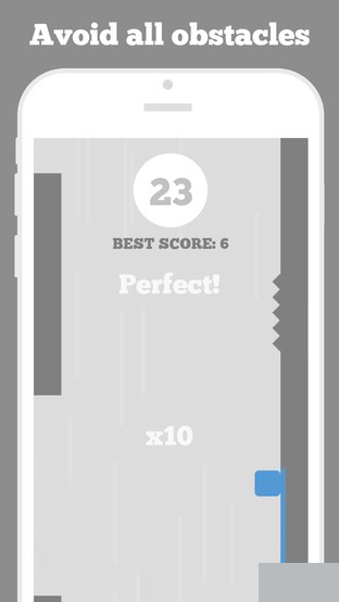 该游戏玩法更是简单到爆,但却十分虐人,如果你有强迫症那就要慎入了。游戏的小方块会沿着左右两侧墙壁向上滑动,玩家只需要点击屏幕控制其躲过墙壁缺口机锯齿状墙面,当然游戏的节奏会根据玩家的情况而改变,快来感受一下吧。