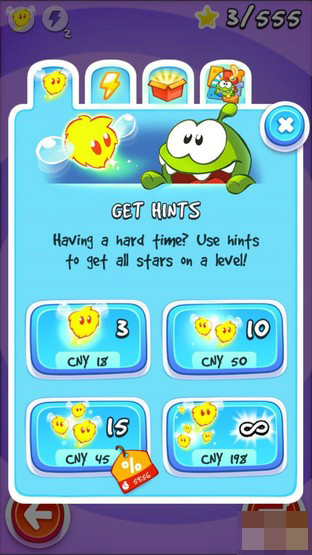 游戏玩法和此前版本保持不变,玩家只需要想方设法让Om Nom和它的祖先吃到糖果的同时收集到星星即可。虽然该游戏可以进行语言选择,但遗憾的是并没有中文项。值得一提的是该游戏曾在2014年获得iKids Awards大奖。并且可以在游戏内观看《Om Nom的故事》动画片。