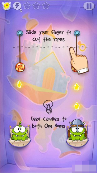《Cut the Rope: Time Travel》是由开发商ZeptoLab UK Limited推出的一款益智类游戏,游戏主角Om Nom是一个小吃货,为了找寻糖果其勿入到了时光机中,穿越到了其祖先生活的时代,所以每关中都会有两个小怪兽一同吃糖果。