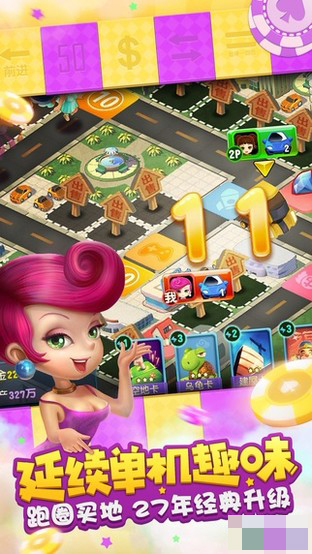 除了经典模式还多了对战模式,可以真实玩家在不同的世界地图上进行比拼竞争,通过选卡、用卡打出财富直线攀升,或是陷害一路到底等多种战略开启富翁生涯,走上人生巅峰。