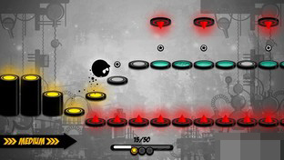 游戏的画面是一大特色。浓浓的水墨风夹杂着现代的艺术气息,简约而不失精致。主人公是一只黑色的小东西,虽其貌不扬,但每跳跃一步就会发出萌萌的叫声。还有那双小眼睛,每眨一次眼似乎都像在挑逗玩家,再加上节奏感十足的背景音乐,十分惹人欢喜。