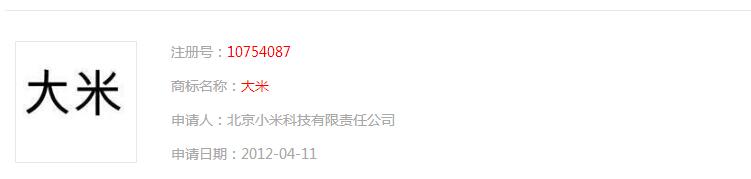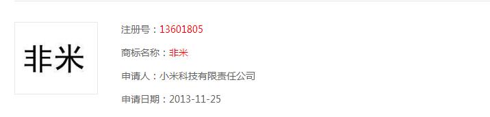 第一步,当然是从雷军开始了,将自己的名字注册成商标,这绝对是名人效应的第一步: