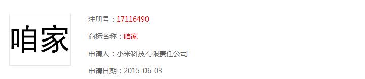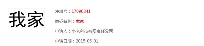 “家’系列的商标应该是为小米家居做准备的: