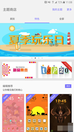 主题商店同样是国内用户喜爱的功能之一,早前三星TouchWiz UI并不支持更换第三方主题。虽然说它已经成为三星手机的一大特色,但对于追求个性化的用户来说,官方内置的几套主题并不能满足他们的胃口。