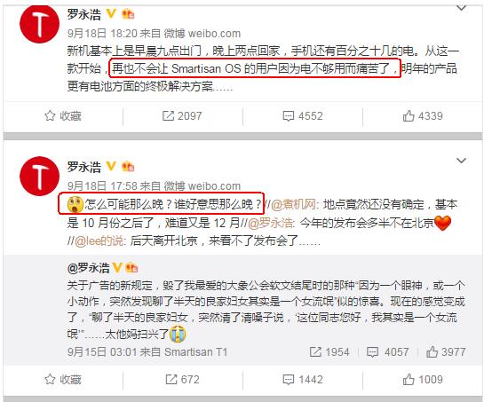 锤子科技下一代旗舰锤子T3至今仍然没有确切的发布信息,不过近期老罗在微博和网友的互动当中终于透露了一些内容,可以猜到,锤子T3发布日期快到了。