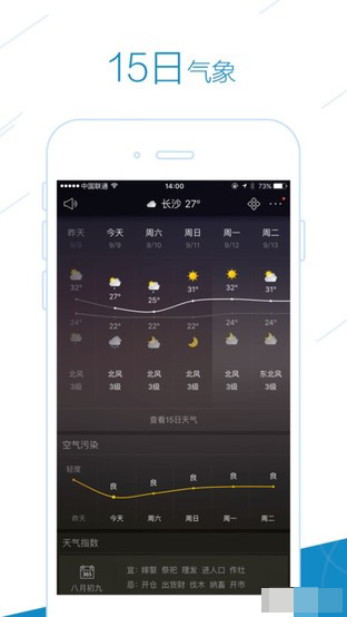 预报信息——24小时天气及温度预报;未来天气信息及趋势对比;支持2486个国内城市区县和676个国际城市。