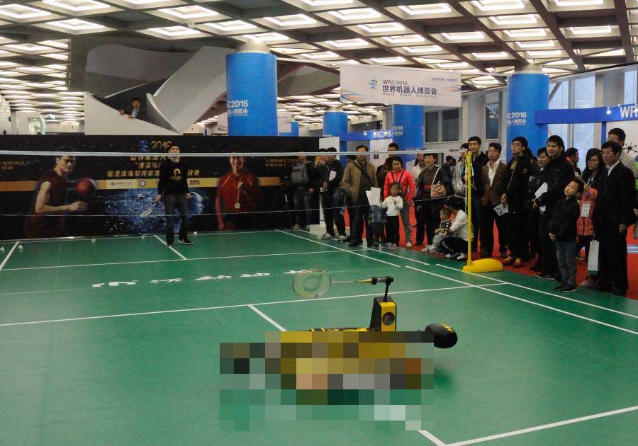 2016年10月21日,“2016世界机器人大会”在北京亦创国际会展中心举行,会打羽毛球的机器人引得观众驻足观赏。