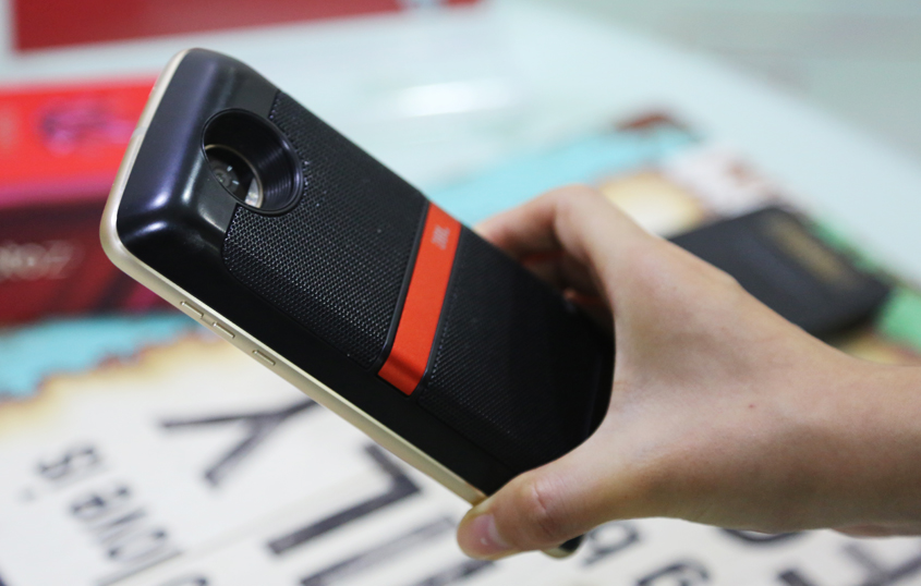 moto z2 play 搭配moto mods智能模块,为手机带来真正意义上的变革,跟随moto mods,玩出你的百变身份。啪嗒一声,任性变身。无需设置与连线,只需一扣,自动识别,手机瞬间变身10倍光学变焦专业相机、70吋随身影院、JBL音响等,随心所欲,畅享百变!