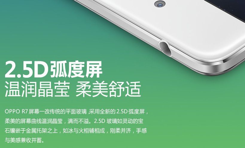 R7采用了一体化金属机身加上2.5D弧面屏幕,这是时下最流行的设计元素。同时,R7继承了R系列的轻薄特性,机身仅为6.3mm。